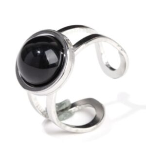 Bague en Onyx de qualité A et de taille 10 mm , elle est en acier inoxydable et réglable