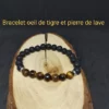 Bracelet pour homme composé de pierre de lave et de pierre oeil de tigre.