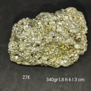 La pyrite est une pierre anti-stress qui apaise l’angoisse, l’anxiété et permet de retrouver une sérénité, elle aide à retrouver de la confiance en soi. C’est une pierre qui apporte de l’assurance, de la volonté. Elle permet de stimuler les capacités mentales, d’augmenté la mémoire, aide à avoir plus de concentration et de réflexion. De ce fait elle est conseillée aux étudiants et pour la réussite professionnelle, elle aide son porteur pour s’investir dans les projets car sa belle couleur doré transmet de la vitalité et de la force. Sur le plan physique, la pyrite détient des propriétés assainissentes sur la sphère respiratoire. De fait, elle s’avère d’un précieux soutien pour les personnes qui ont du mal à respirer. En lithothérapie, la pierre pyrite est incontestablement un soutien à conserver une excellente mémoire. Grâce à son importante teneur en fer, la pyrite est excellente pour lutter contre la fatigue et augmente de facto la capacité de travail intellectuel. On dit de part son passé que c’est une pierre d’abondance. Bélier, lion et Balance sont les signes associés à la Pyrite . Elle appartient au chakra du plexus solaire . Pierre d’ancrage . Elle appartient au noce de fer : 41 ans de mariage.